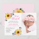 Diese Geburtsankündigung zeichnet sich durch ein hübsches Sonnenblumen- und rosafarbenes Aquarelldesign aus. Personalisieren Sie es mit Ihrem Foto und Text.