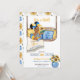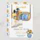 Kleines Mädchen sitzend auf einer Veranda in Gelb und Blau mit Sonnenblumen und Bienengeflecht. Benützen Sie die Babydusche oder den Geburtstag.