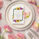 Das Design besticht durch elegante Sonnenblumen, Rose und Gänseblumen mit einer goldgelben, rosa/lila und weißen Farbpalette. Das Design verfügt auch über einen kohlegrauen Rahmen. Sie können die Hintergrundfarbe auf der Vorderseite und zurück in die gewünschte Farbe ändern oder beide Set in Weiß verlassen werden.