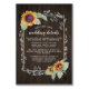 Sonnenblumen Rustikale Hochzeitskarte - mit einem rustikalen Stallholzhintergrund mit Aquarellsonnenblumen und anderen Blumenelementen über einem Aquarellrahmen. Lesen Sie die komplette Zusammenstellung auf dieser Seite, um Ihre Eventbedürfnisse zu erfüllen.