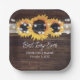 Rustikale Teller mit Blumenmuster, die sich perfekt für eine Hochzeitsfeier mit rustikalem Thema eignen, die von Sonnenblumen inspiriert wird. Einfach zu personalisieren Vorlage.