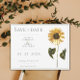 Ankündigen Sie Ihren Hochzeitstag mit dieser Sonnenblume Ankündigung Datum freihalten. Save the Date zeichnet sich das Design durch eine Aquarellsonnenblume und modernes Textdesign aus. Fügen Sie ein Foto und Hochzeitsdetails zu anpassen.