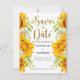 Sonnenblumenkarte Save the Date. Die Hochzeit von Sonnenblumen auf dem Land speichert die Dattelkarte mit blühenden Blume im Wasser. Matching-Elemente verfügbar.