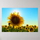 Eine helle Sonnenblume, die an einem heißen Juli Nachmittag von einem Sonnenstern erhellt wird. In einem Feld von Sonnenblumen in der Mitte von Illinois.
