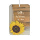 Personalisieren Sie die charmante Sonnenblume und Schleier Land Wedding Air Freshener mit den Namen der Braut und Bräutigam und Heirat Zeremonie Datum, um maßgeschneiderte Gastgeschenke zu erstellen, speichern Sie das Datum Ankündigungen oder Sake-Geschenke. Dieses lässige und dennoch elegante, rustikale Ranch-Thema Hochzeitsluft-Erfrischung bietet ein malerisches Blumenfoto mit einer gelben Sonnenblumenblüte und einem weißen Brautschleier mit braunem Holzhintergrund.