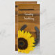 Erteilen Sie Ihren Gästen den Auftrag Ihrer Hochzeit mit dem reizend gelben Sonnenblume-und Hufeisen-Land-Hochzeits-Programm. Fertigen Sie es mit den persönlichen Namen der Braut und des Bräutigams und spezifischen der Trauungsdetails und der Zeitlinie besonders an. Dieses lässige dennoch noble kundenspezifische pferdeartige Themahochzeitsprogramm kennzeichnet eine wunderliche Blumenphotographie einer gelben Sonnenblumeblüte, des rostigen Hufeisens und des Brautschleiers mit einem Braun verwitterten Scheunenholzhintergrund.