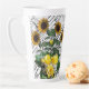 Sonnenblumen und blühende Latte-Tasse