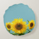 Sonnenblumen auf aquamarin türkisfarbenem Rundkissen.