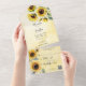 Sonnenblumen auf Aquarellgolden mit QR-Code All In One Einladung