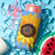 Sonnenblumen auf blauem Himmel können den Sommer k Selters Dosenkühler