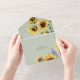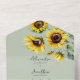 Ihr Hochzeitstag ist eine Feier der Liebe, der Freude und der Schönheit der goldenen Schätze der Natur. Diese All-in-One Hochzeitseinladung zeigt den strahlenden Charme der Sonnenblumen auf einem weichen, schlauen grünen Hintergrund und schafft eine Einladung, die Wärme, Glück und Eleganz verkörpert. Die All-in-One Hochzeitseinladungen sind schön und praktisch, indem sie die Hochzeitseinladung mit einer leicht zu entfernenden perforierten UAWG-Postkarte kombinieren. Sie sind auch schnell und einfach für den Versand vorbereitet. Einfach auf die Einladung richten, die Rückenklappe und das Siegel mit den beiliegenden Klarsichtstickern falten. Sobald Ihre Gäste die voradressierte Einladung erhalten, reißen sie einfach die perforierte RSVP-Karte ab und lassen sie in der E-Mail ablegen. Der QR-Code erlaubt es Ihren Gästen, einfach auf Ihre Hochzeitswebsite zuzugreifen, um Informationen zu erhalten, wie zum Beispiel Empfang und Abendessen.