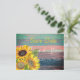 Sonnenblumen auf dem Hintergrund einer Baumrinde Postkarte
