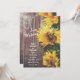 This rustic country wedding einladung feature three beautiful yellow sunflowers with green leaves set against a distressed barn wood background. -