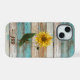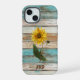 Sonnenblumen auf Imitate Grünes Wetter Holzinitial iPhone 15 Hülle