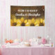 Willkommene Fahne für eine rustikale Hochzeit, die einen Druck der Sonnenblumen gemalt auf Holz kennzeichnet.