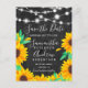 Sonnenblumen mit schwarzem Kalkbrett, Sonnenblumen, die auf einem Vintagen Zement und einer eleganten Kalligrafie-Typografie thronen, bewahren das Datum mit handgemalten orangefarbenen und grünen Blütenmöbeln. Ideal für Herbsthochzeiten im Herbst. Ideal für Land , Brauereien Themen.