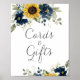 Sonnenblumen Blumen Navy Blue Hochzeitskarten Geschenke Schild. Rustikale Hochzeitskarten und Posterschild