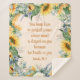 Schöne, elegante und stilvolle gelbe Sonnenblumen und grüne Eukalyptus-Blätter auf cremefarbenen, inspirierenden Sherpa-Decke mit dem Christlichen Bibelverse Isaiah 26:3 Du behalte ihn in vollkommener Ruhe, dessen Geist auf dir bleibe wird, weil er dir vertraut."