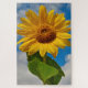 Schöne nahe Sonnenblume, natürliche botanische Kunstfotografie während der Sommerzeit. Farben dieses eleganten und frischen Designs: grün, gelb und blau.