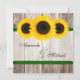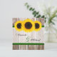 Eine elegante Sonnenblumenhochzeit. Mit rustikalem Scheunenholz mit grünen Imitaten Band und gelben Sonnenblumen. Ideal für eine Hochzeit auf dem Lande, eine Sonnenblumenhochzeit, eine Brauerei und vieles mehr!Designs sind gedruckte Illustrationen/Grafiken - NICHT AKTUELLE RIBBON.