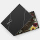 Das Design besticht durch einen mit Bornholz bedruckten Hintergrund mit einem geometrisch goldfarbenen Rahmen, der mit bordeauxfarbenen rote Rosen, blühenden Blumenelementen, Sonnenblumen, Eukalyptus und anderen Grünpflanzen dekoriert ist.