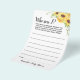 Sonnenblumen, die ich bin Baby Shower Game Card. Fügen Sie dem Design den Wortlaut hinzu. Für weitere Anpassungen (andere Formulierungen, Schriftart, Stil des Schriftartes), klicken Sie auf Personalisieren, scrollen Sie nach unten und klicken Sie auf den Link "Klicken Sie auf, um weitere Anpassungen vorzunehmen". WIE MAN SPIELT: Die Gäste schreiben ein persönliches Gedächtnis auf, das sie mit der Mama haben. Die Braut liest jede Karte und wenn sie sich nicht an den Gast erinnern kann; dieser Gast gewinnt einen Preis!