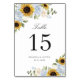 Sonnenblumen Dusty Blue Floral Rustikale Tischnummer. Elegante Sonnenblumen Grüne Hochzeiten Tischnummern