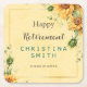 Feiern Sie Ihren Ruhestand stilvoll mit diesem eleganten Party Watercolor Rente Square Paper Untersetzer. Dieser Untersetzer besticht durch ein Vintages Sonnenblumendesign in Aquarellfarben, das durch einen goldenen Rahmen gerahmt ist. Sie können ihn mit Ihrem Namen, Datum und jedem anderen Text, den Sie gewollt haben, anpassen. Dieser Untersetzer ist ideal, um Ihrem Party eine Touch von Wärme und Freude hinzuzufügen. Es wird auch ein schönes Souvenir für Ihre Gäste, um sich an diesen besondere Anlass zu erinnern.