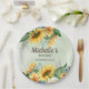 Elegante gelbe Sonnenblumen im Landstil und grüne Eukalyptus-Blätter sorgen für die individuelle Geburtstagsparty der Frau rund um die Teller auf Papier, personalisiert mit ihrem Namen und Party-Datum Perfekt für Ihre Sommer- oder Herbst Geburtstagsparty. Wählen Sie aus einer Vielzahl von Formaten und Formen. Kontaktieren Sie mich, um Hilfe bei der Anpassung zu erhalten oder um zusätzliche Matching oder Koordination von Zazzle Produkten für Ihr Party anzufordern.