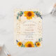 Ein goldfarbener Hintergrund mit Sonnenblumen, Eukalyptusgrün, goldenen Blätter und Herzen. Personalisieren und fügen Sie Ihre Namen und Party-Details.