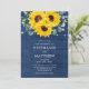 Diese rustikale Hochzeitsfeier in Aquarellfarben ist mit einem Aquarell-Sonnenblumendesign mit Eukalyptus-Blätter und Lichtern auf einem marineblauen Holzhintergrund versehen. Personalisieren Sie sie mit Ihrem Text. Matching-Produkte verfügbar.