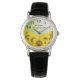 Sonnenblumen Frauen schwarzes Leder Strap Watch