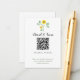 Eine Hochzeitseinschlusskarte für Gäste mit einem QR-Code, den sie scannen können, um weitere Details zu erfahren, verziert mit einem Sonnenblumenstiel, der zwei leuchtend gelbe Blüten und üppige grüne Blätter trägt. Bitte vergessen Sie nicht, Ihre Webadresse für den QR-Code anzugeben.