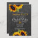 Rustikales Land elegante Geburtstagsparty / Herbst Herbst Grillen stilvolle Einladung Vorlage auf dunkelgrauen Kalkboard wie Hintergrund mit Haufen von gelben goldenen Sonnenblumen. Füllen Sie Ihre Party-Details in den Punkten. Sie können wählen, um es anzupassen weitere sich ändernde Schriftartes und Farben der Schrift. — Die Einladung ist geeignet für elegante Herbst rustikale Land Geburtstag / Erntedank / Hauswärmung / Grill Party. — Wenn Sie Hilfe benötigen, kontaktieren Sie mich bitte!