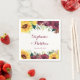 Die Hochzeitsnapkins sind mit Sonnenblumen in Aquarelltönen, bordeauxroten Rose und grünem Blattwerk ausgestattet. Personalisieren Sie sie mit Ihren Namen und Hochzeitsdatum. Diese Servietten sind Teil einer Kollektion, die eine komplette Palette von passenden Hochzeitswaren und Brautprodukten umfasst. Bitte besuchen Sie unseren Shop oder unsere Sammlungs-Seiten, um das komplette Sortiment zu sehen.
