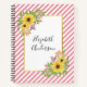 Sonnenblumen in Aquarellen, rosa und weiße Streife Notizbuch