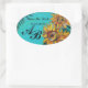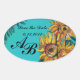 SONNENBLUMEN IN BLAU, AQUAMARIN, Save the Date, Mo Ovaler Aufkleber