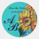 SONNENBLUMEN IN BLAU, AQUAMARIN, Save the Date, Mo Runder Aufkleber
