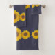 Sonnenblumen in dunkelblau - Badetuch-Set mit der originalen Kunst von Alma Wad . Jazz auf ein langweiliges Badezimmer mit diesem Blumendesign. Sie können es mit Monogrammen /text/logo personalisieren. Sie können auch die Hintergrundfarbe bearbeiten .