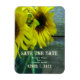 Ein Save the Date Hochzeitsmagnet mit einem Foto aus einem Glas Sonnenblumen mit Barnwood-Hintergrund. Personalisieren Sie den Text. Suchen Sie nach passenden Hochzeitseinladungen und mehr in Jill's Paperie.