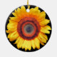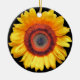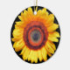 Eine hübsche Sonnenblume vor schwarzem Hintergrund und gelbem Rand. England UK.