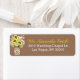 Sonnenblumen, Spitzen und Maurerkirsche über dem burlap-look-Hintergrund Hochzeitsadressen-Label.