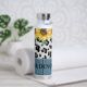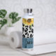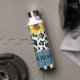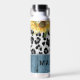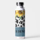 Sonnenblumen Leopard Print Rustic Chic Name Insulated Water Flasche zeigt gelbe Sonnenblumen mit Grün auf einem Leopardenprint auf einem rustikalen Holzboden und personalisiert mit Ihrem Namen. Entworfen von © Evco Studio www.zazzle.com/store/evcostudio
