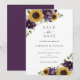Sonnenblumen Lila violette blühende rustikale Hochzeit Save the Date Card, rustikale Sonnenblumen Violet Hochzeit speichern das Datum Einladungskarte, florale Lilac Hochzeit Save the Date Card