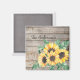 Schöner Magnet aus Holz und Sonnenblumen, personalisieren Sie mit Ihrem Namen