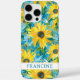 Passe dieses farbenfrohe moderne Sonnenblumen auf Türkis-Malerei iPhone 16 Pro Max Case mit deinem Namen in einer trendigen modernen CAP-Schrift in Türkis auf Weiß an. Es ist so schön und fröhlich!
