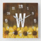 Sonnenblumen malten auf Monogramm des Holz-| Quadratische Wanduhr