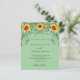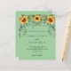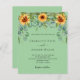 Ein minzgrün gefärbter Hintergrund mit Sonnenblumen, Eukalyptusgrün. Personalisieren und fügen Sie Ihre Namen und Party-Details. 1 Blatt = 1 Einladung mit Druckkante bis Kante.