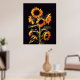 SONNENBLUMEN MIT GRÜNEN BLÄTTER IN SCHWARZ POSTER