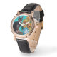 SONNENBLUMEN MIT SCHWARZEM KATZGEBÄUDE, türkisblau Armbanduhr